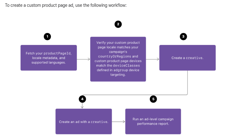 Estratégia de otimização: Teste continuamente diferentes combinações de materiais (como trocar capturas de tela, ajustar o texto), rastreando o melhor CTR e os resultados de conversão. Utilize Página de produto personalizada da ASA Funcionalidade (CPP) para veicular páginas personalizada para campanhas específicas, testando o impacto criativo. A consistência entre os materiais e a página da loja beneficia tanto a ASO quanto melhora diretamente o desempenho do anúncio. Otimizar a criatividade dos anúncios é uma medida fundamental para aumentar a eficiência do orçamento e reduzir o CAC.