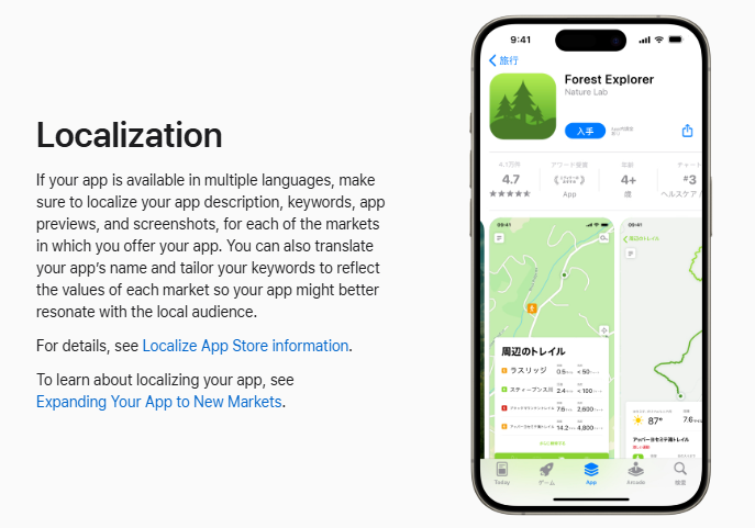 あなたのアプリのターゲットユーザーがさまざまな国や言語圏にまたがっている場合、ローカライズは世界中のユーザーのアクティブ化率を向上させるための重要な戦略の一つです。ローカライズとは、アプリストアのメタデータを翻訳するだけではなく、各地域のユーザーの文化的背景や言語習慣に応じた的確な最適化を行うことを指し、それによりアプリが各地のユーザーにとってより魅力的で親しみやすいものになります。