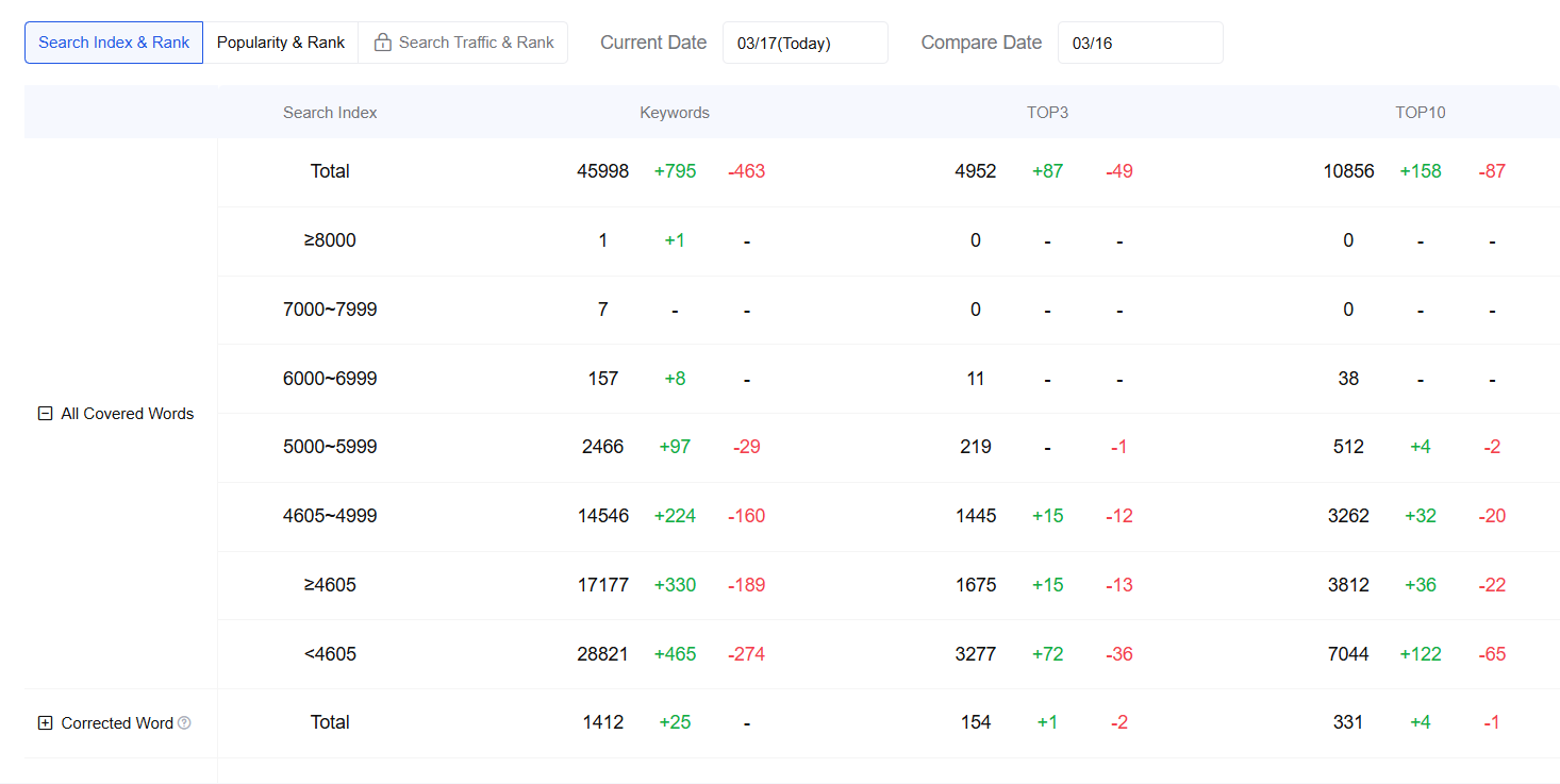 Análise de palavras flutuantes: Monitore as palavras-chave que subiram 20 ou mais posições em um dia. Essas palavras geralmente refletem ajustes significativos nas estratégias dos concorrentes e têm grande valor de referência para a formulação da própria estratégia de ASO.