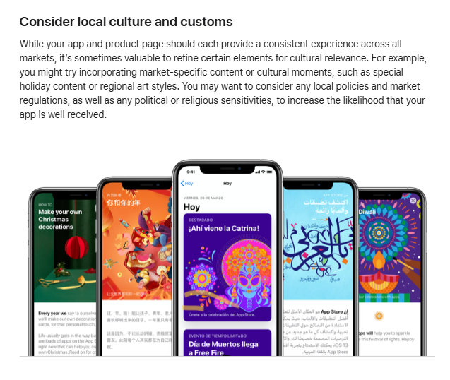Quando um aplicativo social entrou no mercado árabe, traduziu diretamente "Pessoas próximas" para o árabe com um software de tradução, sem saber que as usuárias locais raramente usavam a função de localização por razões culturais, resultando em quase zero tráfego para essa palavra-chave. Por outro lado, em casos bem-sucedidos, outro aplicativo social mudou para "Comunidades de interesse" como palavra-chave principal e combinou com "Eventos de Iftar online" durante o Ramadã, ultrapassando 500 mil downloads.