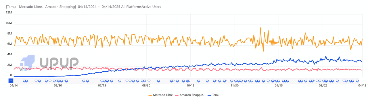 «Тихая жатва» Shopee Когда Temu и Mercado Libre вступили в прямую конкуренцию, Shopee тихо получила выгоду благодаря своей развитой сети локальных складов. С 1 по 12 апреля количество загрузок приложения стабильно находилось в диапазоне от 25 до 30 тысяч. По мнению аналитиков, «оборонительная стратегия» Shopee заключается в сосредоточении на ключевых категориях (мода и косметика) и укреплении лояльности пользователей через прямые трансляции.