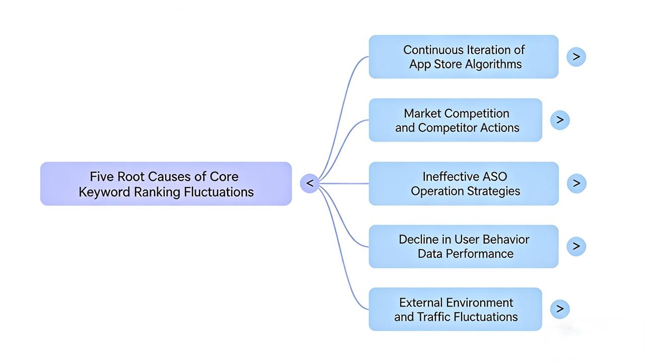 Предоставляется глубокий анализ ключевых факторов, вызывающих колебания позиций ключевых слов в ASO, включая корректировки алгоритмов, динамику конкурентов и собственную операционную деятельность, а также предлагается реализуемая систематизированная стратегия, способствующая долгосрочной стабильности и росту позиций ключевых слов приложения.