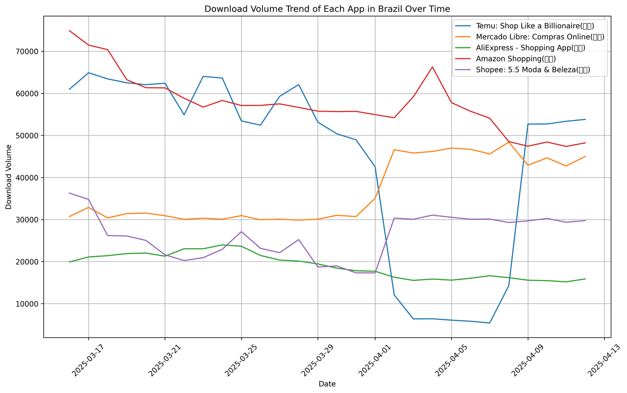 Temu 在巴西市場的下載量波動解析:政策調整與競爭角力背後的電商博弈