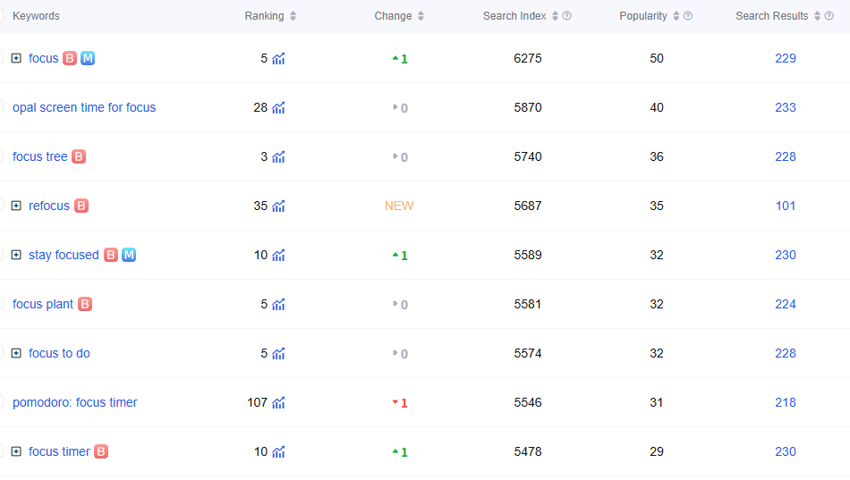 因此,在迭代期間務必透過ASO工具密切監控競品的關鍵詞變化和排名走勢,及時調整自身策略以維持競爭力。