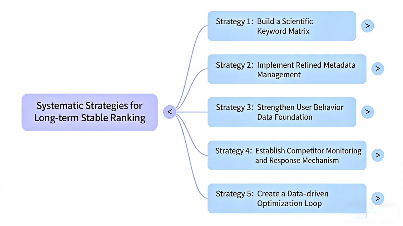 通過構建科學的關鍵字體系、實施穩健的元數據管理、持續提升產品與用戶體驗、敏銳洞察競爭環境並建立資料驅動的迭代循環,能夠有效抵禦外部波動,構築起排名的長期穩定性。